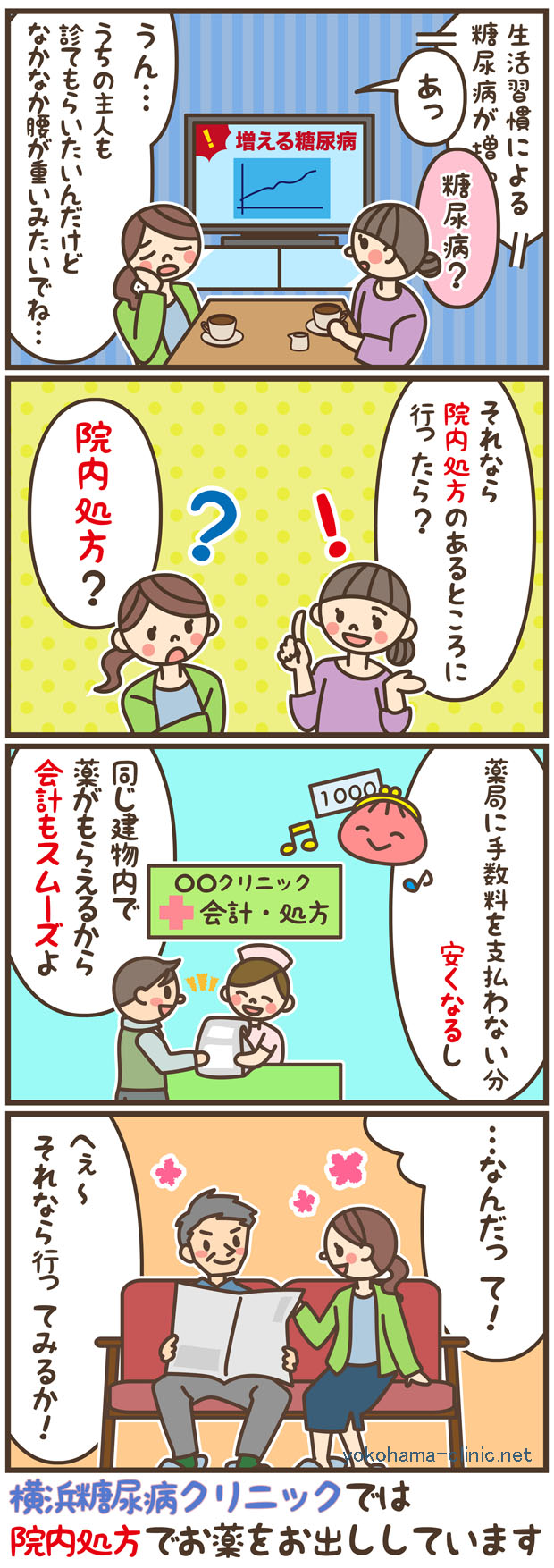 糖尿病の内服薬やインスリンの他、高血圧や高脂血症、痛風などの生活習慣病の薬を院内処方でお渡し致します。